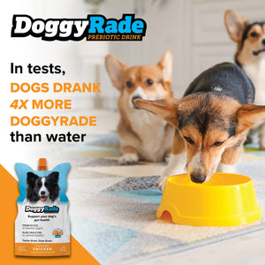 DoggyRade comes in 8.4 fl oz (250ml) and 16.9 fl oz (500ml) ready-to-drink pouches