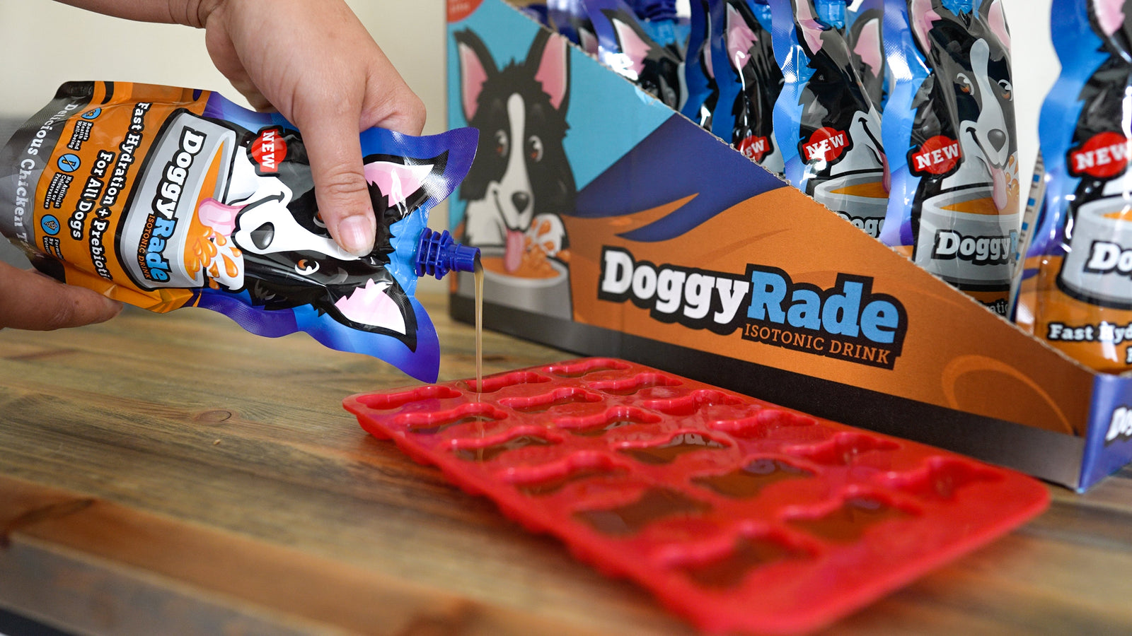 We have developed a refreshing treat using a palatable formula to encourage hydration. Formulated by veterinarians, DoggyRade is a low-calorie prebiotic drink with a great chicken taste profile that dogs love. In taste test trials, dogs drank four times more DoggyRade than water. The isotonic formulation means their bodies are better able to absorb the nutrients included in DoggyRade. The isotonic drinks contain the right combination of amino acids, prebiotics and balanced electrolytes to support good health and fast hydration.